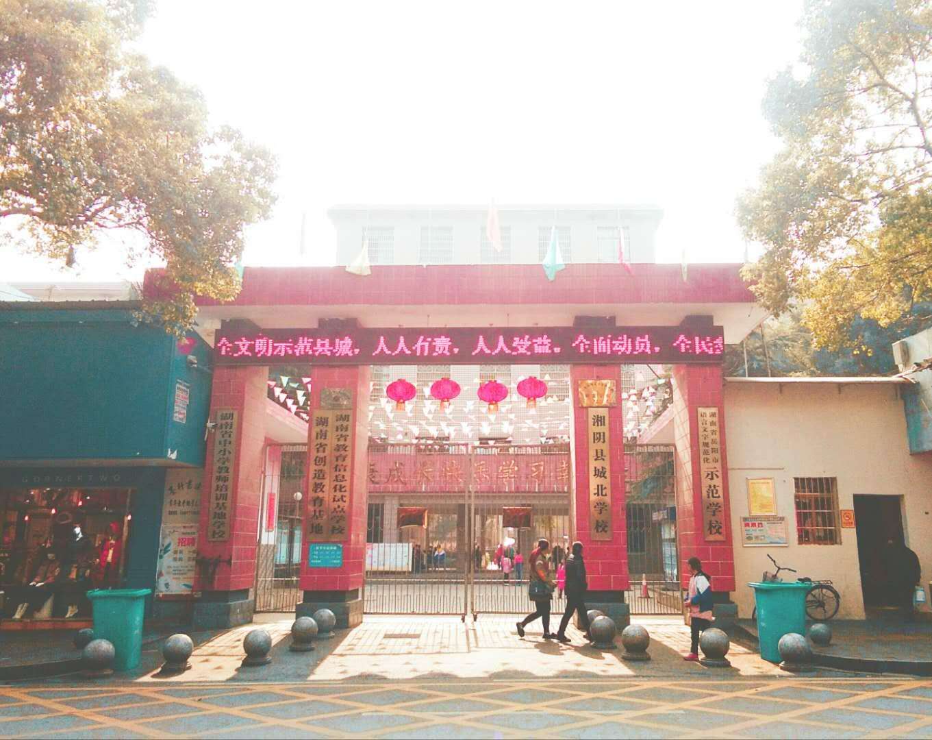 該學校是湘陰縣城北學校,主要有教學樓,籃球場,宿舍等。